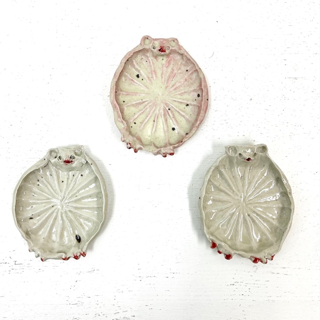 地下スペース にて< 2025.11.1(Sat) - 11.16(Sun)>期間開催しています 、廣田哲哉 個展 | High cheese。会場にて販売しています陶器作品を ~ 11月 16日(日)19時迄 Online Storeでも販売します。 _____ ■廣田哲哉 | Tetsuya Hirota 1985年 奈良生まれ。武蔵野美術大学工芸工業デザイン陶磁コースを卒業。笠間焼製陶所勤務後、2015年に独立。ユニークで愛嬌のある架空の“イキモノ”をテーマに独自の世界観で器や置物などの陶芸品を生み出す。 ※ こちらの作品は会場でも同時に販売しており、ご注文後 在庫確認いたしますが、「在庫切れ」の場合がございます。 その際はメールにてご連絡いたします。予めご了承くださいませ。 ※ サイズ 多少の誤差が出る場合がございます。 ※ PC・スマートフォンなどの環境によって、実物と少し色が違って見える場合がございます。 ※ 梱包は環境に配慮し、リユースのダンボールを使用する場合がございます。予めご了承くださいませ。 ※ プレゼント包装はお受け致しておりません。 ■電子レンジ / 食洗器:使用不可 ■ハンドメイド商品のため、一つ一つ絵柄の入り方や形、大きさが若干異なります。 ■色むらや小さなヒビ割れがある場合がございますが、不良ではなく作品の個性(味)としてお楽しみください。 <サイズ> 1・縁の高さ- 約1.6cm / 横幅 - 7.7cm / 縦幅 - 9.6cm 2・縁の高さ- 約1.6cm / 横幅 - 8.2cm / 縦幅 - 10.1cm 3・縁の高さ- 約1.5cm / 横幅 - 8cm / 縦幅 - 10cm