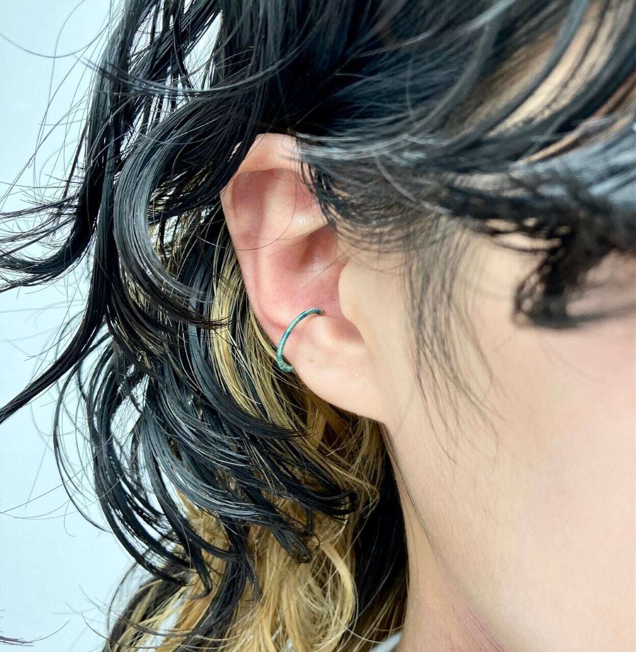 ※ 耳の溝にはめて使用するイヤーカフ。耳は個人差がありますので馴染む場所を見つけ、装着してください。ピアスの穴が空いていない人も着けれます。そして空いている人は、ピアスとセット着けもオススメです。