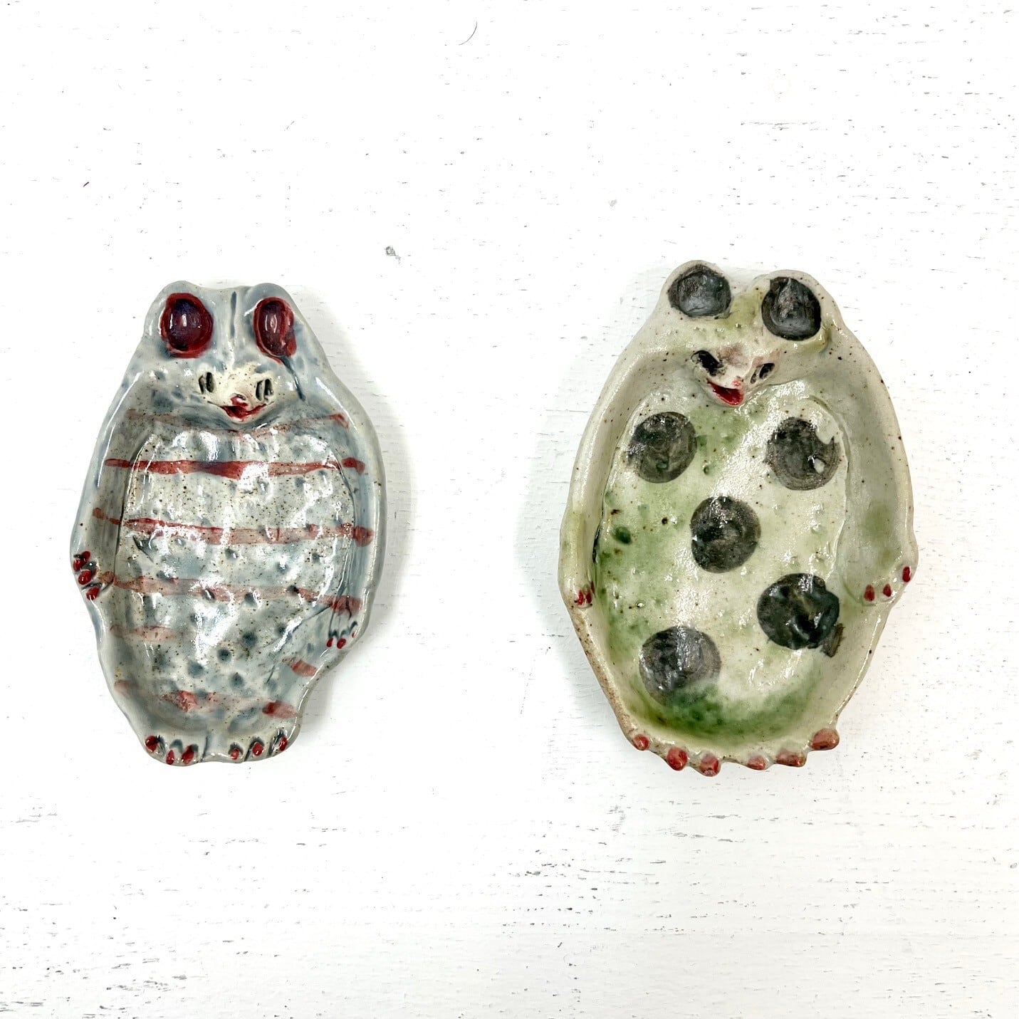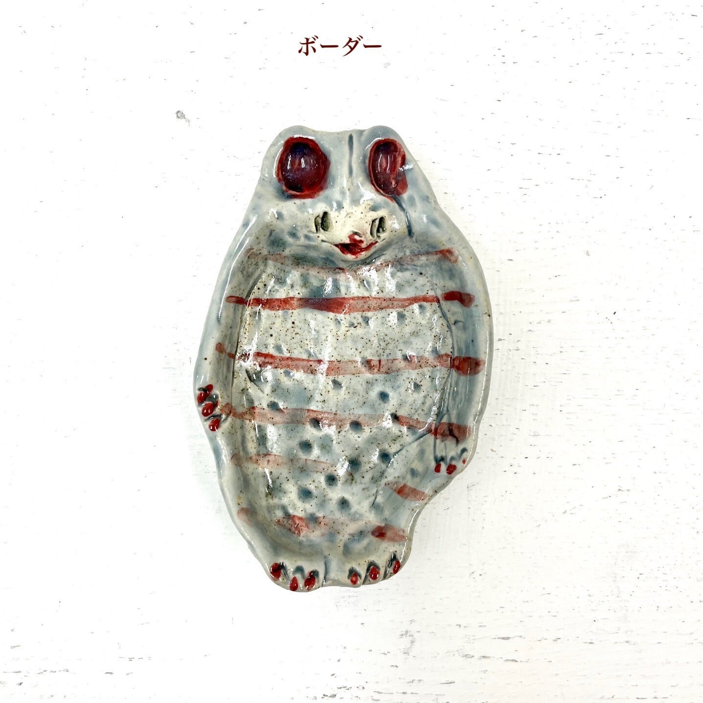1985年 奈良生まれ。武蔵野美術大学工芸工業デザイン陶磁コースを卒業。笠間焼製陶所勤務後、2015年に独立。ユニークで愛嬌のある架空の“イキモノ”をテーマに独自の世界観で器や置物などの陶芸品を生み出す。