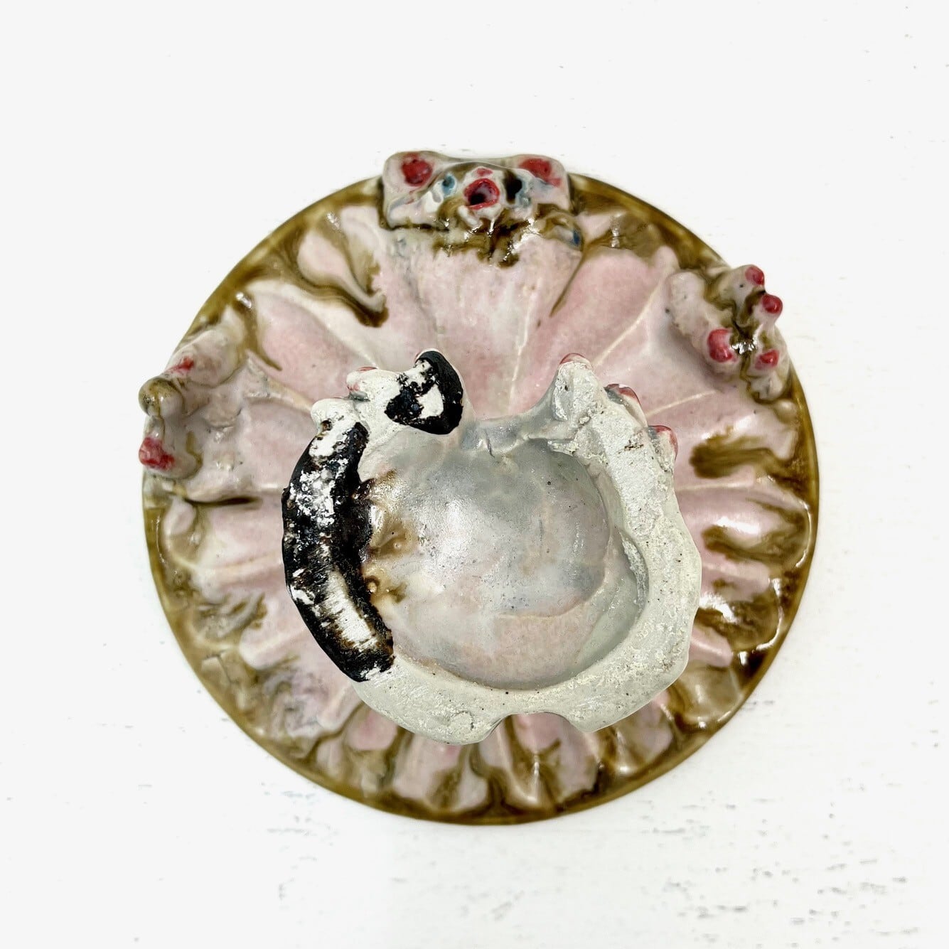1985年 奈良生まれ。武蔵野美術大学工芸工業デザイン陶磁コースを卒業。笠間焼製陶所勤務後、2015年に独立。ユニークで愛嬌のある架空の“イキモノ”をテーマに独自の世界観で器や置物などの陶芸品を生み出す。