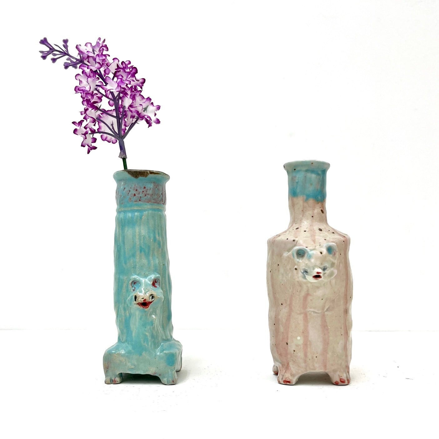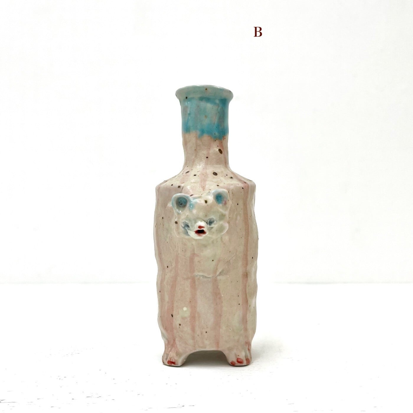 1985年 奈良生まれ。武蔵野美術大学工芸工業デザイン陶磁コースを卒業。笠間焼製陶所勤務後、2015年に独立。ユニークで愛嬌のある架空の“イキモノ”をテーマに独自の世界観で器や置物などの陶芸品を生み出す。
