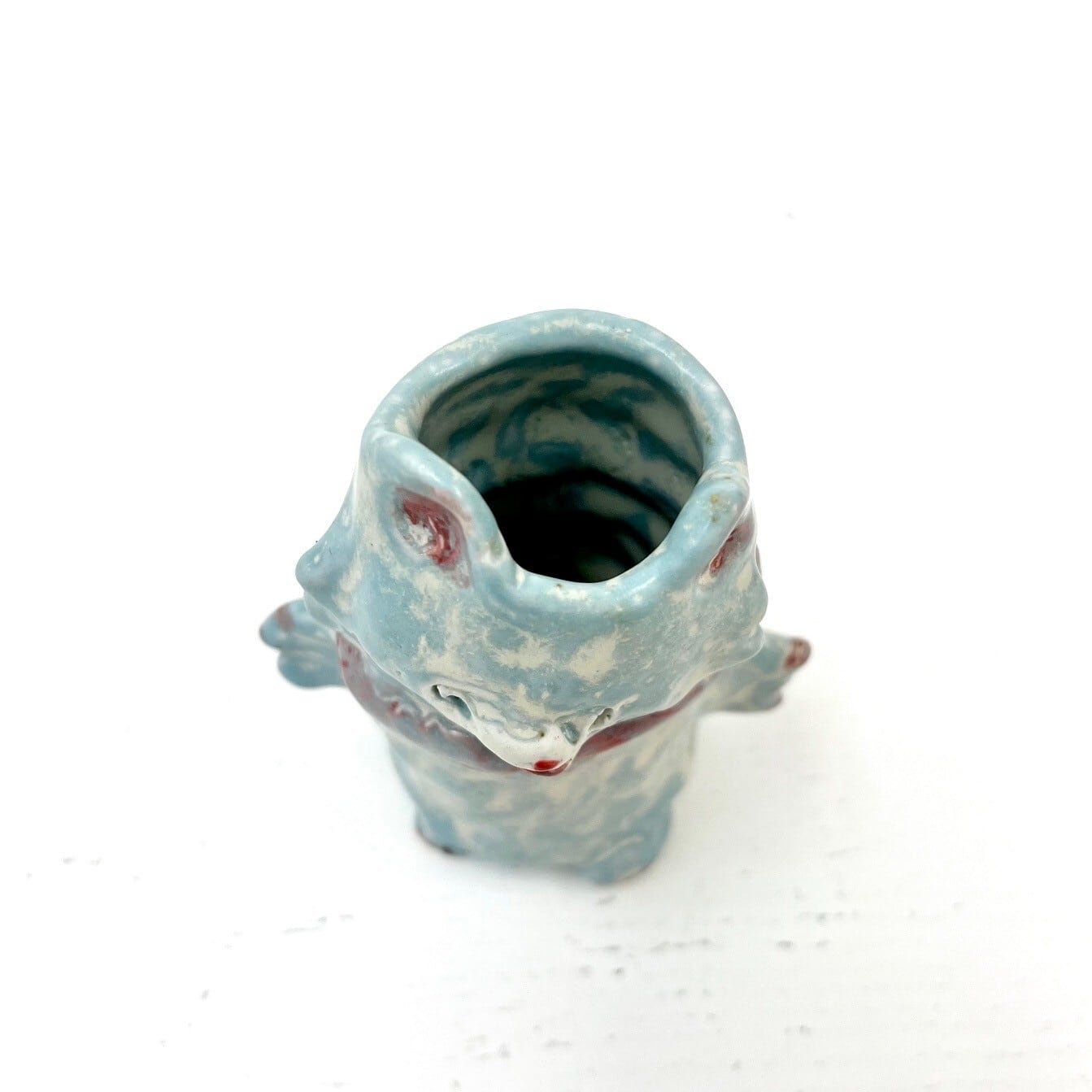 1985年 奈良生まれ。武蔵野美術大学工芸工業デザイン陶磁コースを卒業。笠間焼製陶所勤務後、2015年に独立。ユニークで愛嬌のある架空の“イキモノ”をテーマに独自の世界観で器や置物などの陶芸品を生み出す。