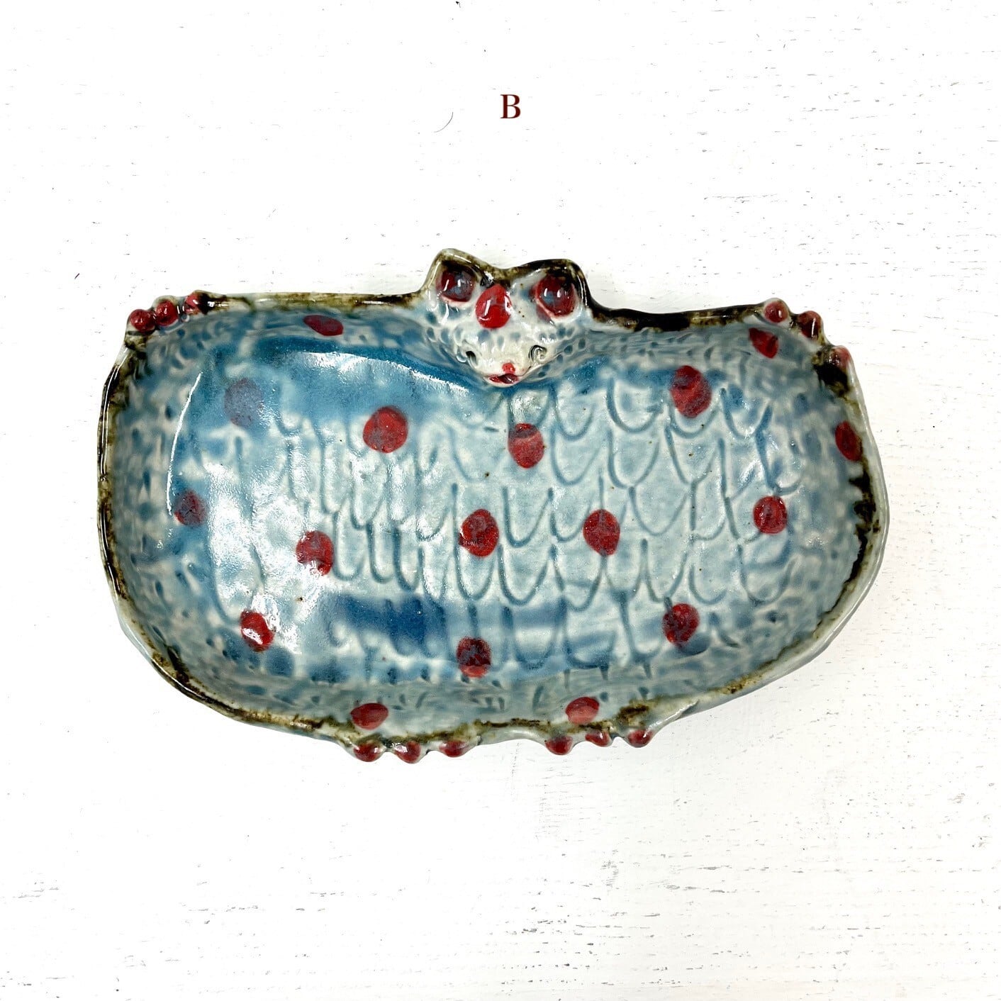 1985年 奈良生まれ。武蔵野美術大学工芸工業デザイン陶磁コースを卒業。笠間焼製陶所勤務後、2015年に独立。ユニークで愛嬌のある架空の“イキモノ”をテーマに独自の世界観で器や置物などの陶芸品を生み出す。