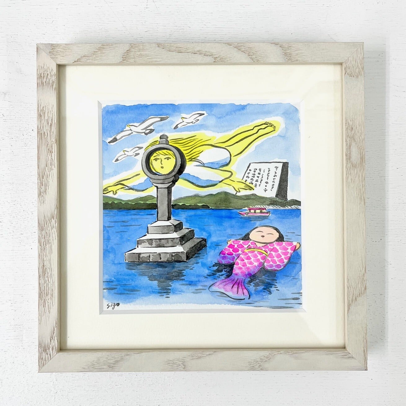 ・紙 - 顔料インク、水彩絵の具 <額付き>
