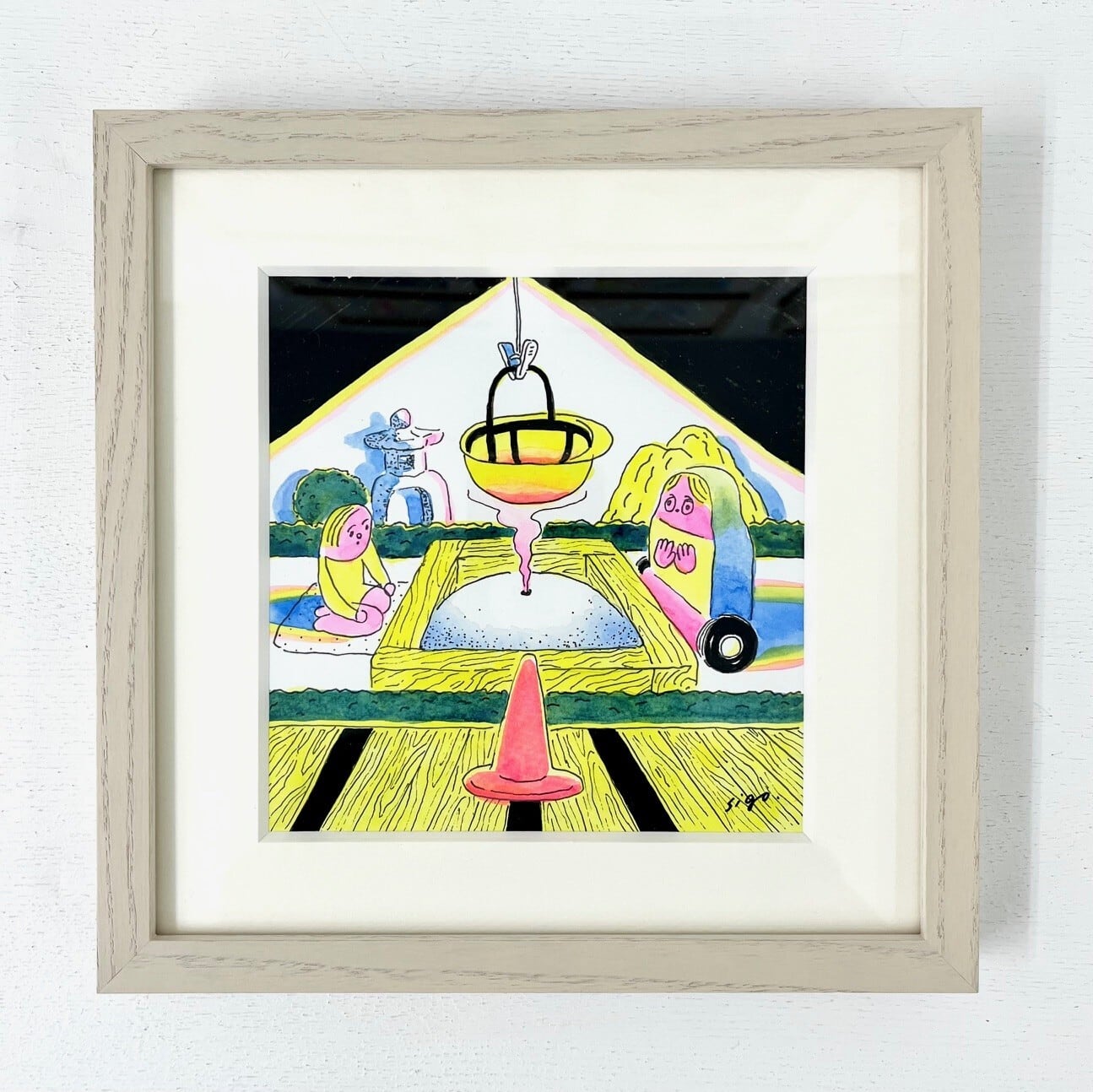 ・紙 - 顔料インク、水彩絵の具 <額付き>