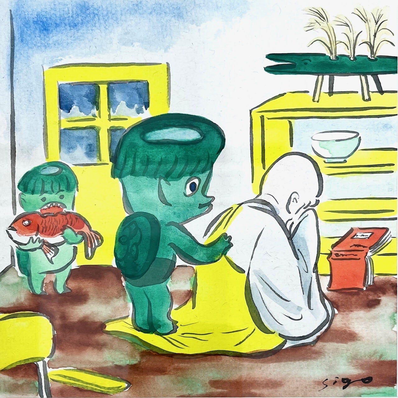 地下スペース にて< 2026.1.10 sat – 1.25 sun>期間開催しています 、死後くん個展『囲炉裏に囲まれて』(Surrounded by IRORI)。会場にて販売しています原画作品、グッズを ~ 1月 26日(月)お昼12時迄 Online Storeでも販売します。