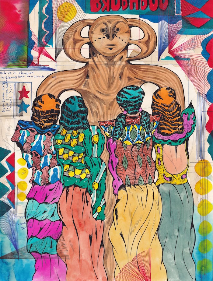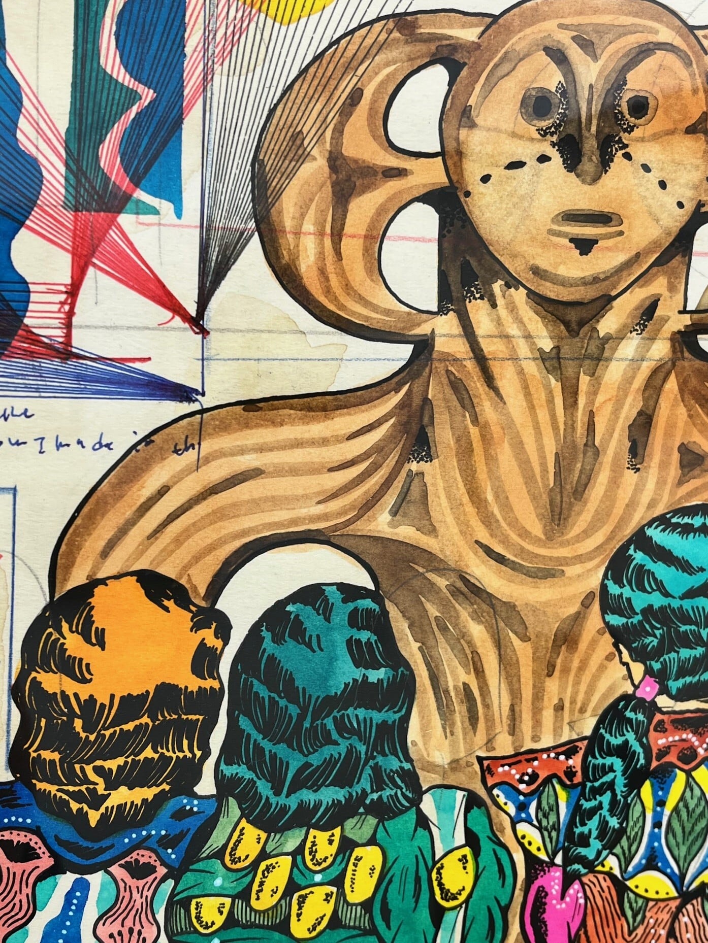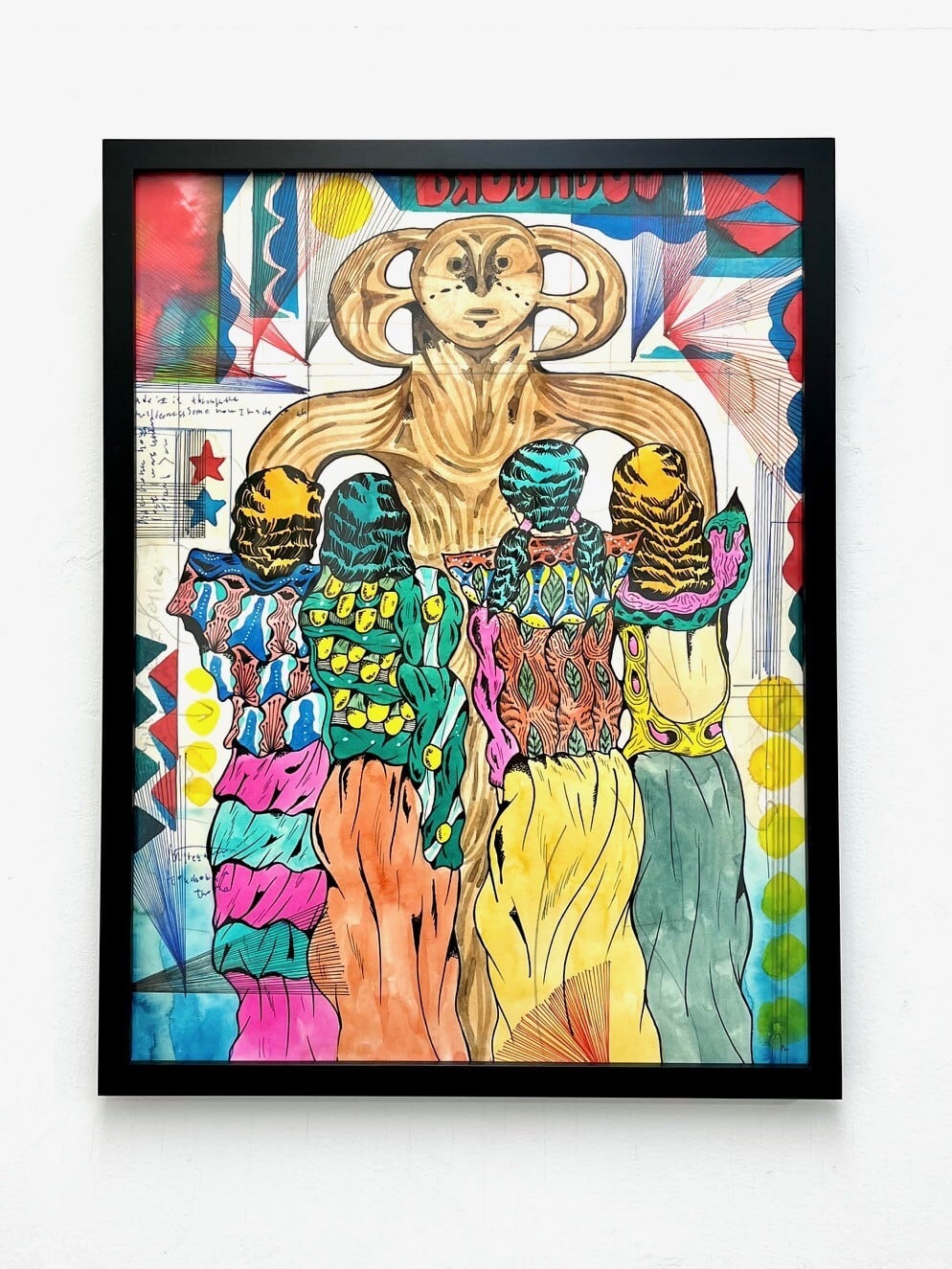 素材 : 紙 - 水彩絵具、カラーインク、鉛筆 <額付き>