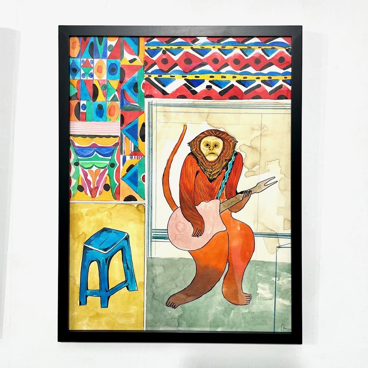 素材 : 紙 - 水彩絵具、カラーインク、鉛筆 <額付き>