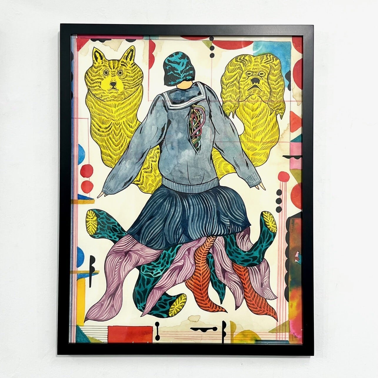 素材 : 紙 - 水彩絵具、カラーインク、鉛筆 <額付き>