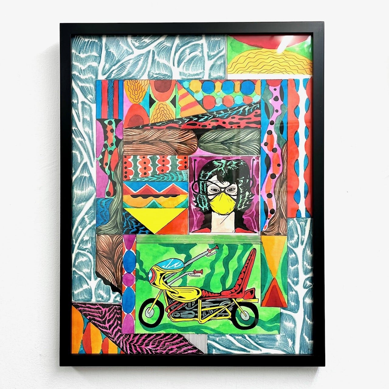 素材 : 紙 - 水彩絵具、カラーインク、鉛筆 <額付き>